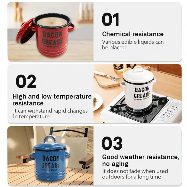 Portable use: The double-ear design is easy to carry. the high-temperature resistant enamel grease container and the detachable filter are made of food-grade 304 stainless steel. and can be used as a pot outdoors for cooking competitions